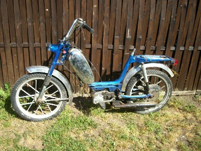 Ein Piaggio Super Bravo Mofa. Ziemlich verbastelt und auch nicht komplett. Zumindest der Motor dreht noch. Wird wohl noch etwas dauern, bis ich hier mit den Arbeiten beginne. Gekauft im Juli 2011