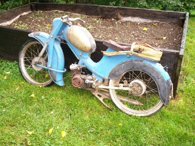 Der Motor ist leider fest, aber für die alten Sachs Motoren gibt es noch viele Ersatzteile, eine Überholung dürfte daher keine größeren Probleme bereiten.