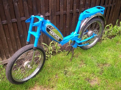 Die Hercules, man sieht die nicht originale Gabel die aus einem wesentlich neueren Modell stammt.